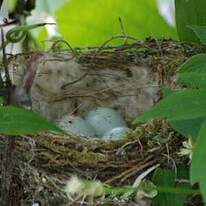 It is a small, compact nest with very careful construction. It is made of moss and herbs, possibly agglomerated with spider silk. The interior is lined with soft elements such as plant down, willow or poplar seeds, sheep's wool, or feathers. Lichens are incorporated into the wall.The female lays 4 to 5 pale blue spotted eggs with reddish-brown. Incubation lasts 12 to 14 days and starts with the laying of the third egg. The female performs the incubation alone. She is fed by the male at the nest during this period.