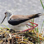 Le nid de l'échasse blanche est une dépression peu profonde grattée dans le sol. Il est situé sur un tas de végétation, dans l'eau sur des herbes aquatiques, ou près de l'eau sur la rive.